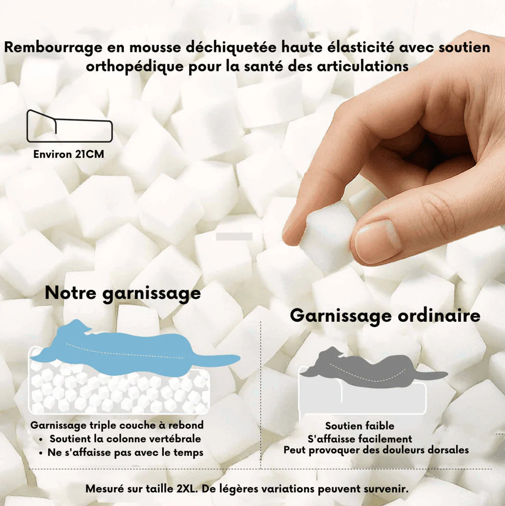 besonders geeignet für große oder schwere Hunde. Er bietet eine großzügige Fläche und eine gleichmäßige Stützung, ohne Abstriche bei der Weichheit.
